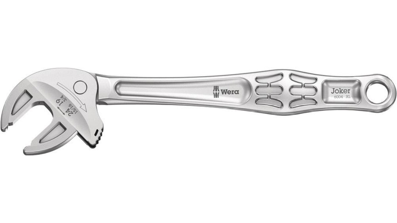 Many users wish to have a universal screwdriving tool with the widest possible range of applications. It should be a single tool for multiple metric and imperial dimensions. It should automatically adjust to the different screw sizes. It should be safe to grab without damaging anything and should allow for high working speeds. With its continuous and parallel jaws the Joker 6004 replaces several single spanner sizes. The required size is automatically and continuously set when attaching the tool to the hexagon bolt or screw. The integrated lever mechanism securely clamps the hexagon screw or bolt between the jaws, which significantly reduces the risk of slippage or damage. The ratchet feature ensures fast and consistent screwdriving without removing the tool. By using the corner-width rectangular prisms, a back-pivoting angle of only 30° can be achieved. The single-arm design, in conjunction with the ratchet feature and the corner-width prism, makes it possible to work even in confined spaces. The adjustable Joker 6004 is the universal screwdriving tool. Self-setting. Gripping. Spanning.