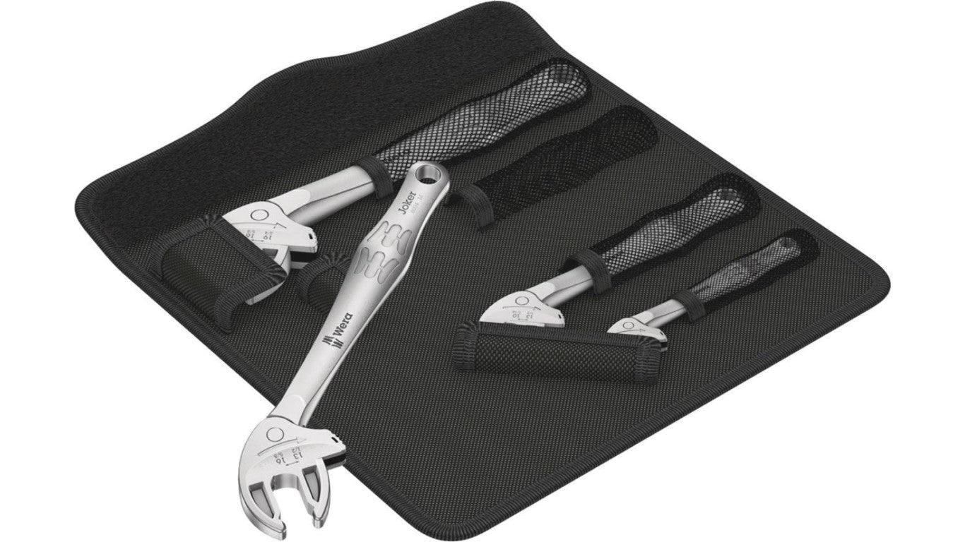 Many users wish to have a universal screwdriving tool with the widest possible range of applications. It should be a single tool for multiple metric and imperial dimensions. It should automatically adjust to the different screw sizes. It should be safe to grab without damaging anything and should allow for high working speeds. With its continuous and parallel jaws the Joker 6004 replaces several single spanner sizes. The required size is automatically and continuously set when attaching the tool to the hexagon bolt or screw. The integrated lever mechanism securely clamps the hexagon screw or bolt between the jaws, which significantly reduces the risk of slippage or damage. The ratchet feature ensures fast and consistent screwdriving without removing the tool. By using the corner-width rectangular prisms, a return angle of only 30° can be achieved. The single-arm design, in conjunction with the ratchet feature and the corner-width prism, makes it possible to work even in confined spaces. The adjustable Joker 6004 is the universal screwdriving tool. Self-setting. Gripping. Spanning. 4-piece set for at least 18 different metric and imperial screw drives, comes in a compact folding bag. The Joker bags are suitable for attachment to walls, shelves, workshop trolleys and the Wera 2go system thanks to the hook and loop fastener system on the back.