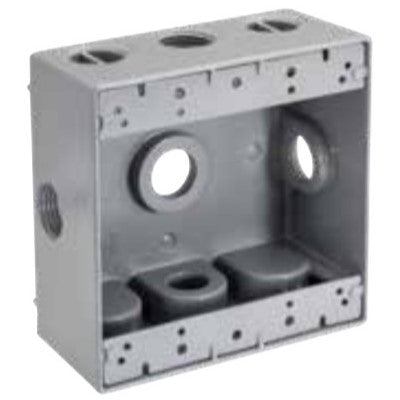 1" 5 Hole, Side Opening, Double Gang Weatherproof Box