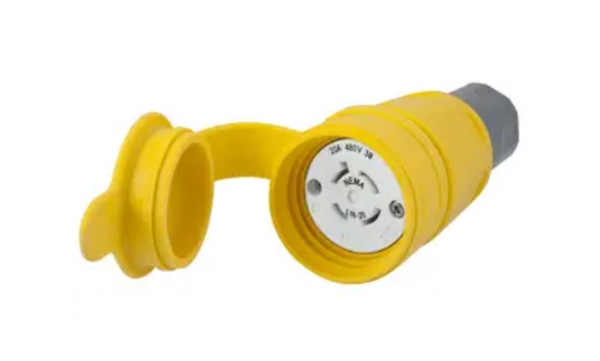 Watertight Devices, Locking Devices, Elastomeric, Female Connector Body, 20A 3-Phase Delta 480V AC, 3-Pole 4-Wire Grounding, L16-20R, Screw Terminal, Yellow, Water/Dust-Tight Housing