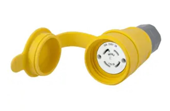 Watertight Devices, Locking Devices, Elastomeric, Female Connector Body, 30A 3-Phase Delta 250V AC, 3-Pole 4-Wire Grounding, L15-30R, Screw Terminal, Yellow, Water/Dust-Tight Housing