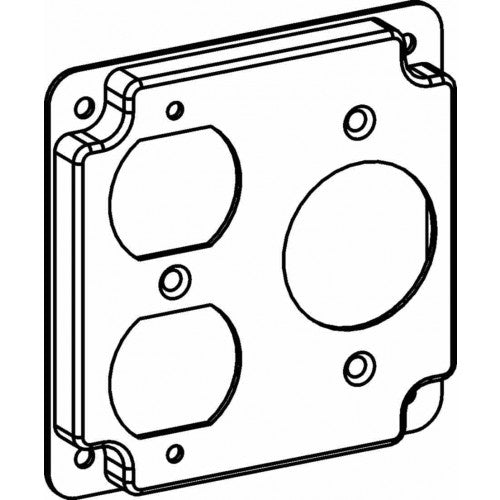 | Raised 1/2", 4" Square Industrial Cover Duplex / Single Receptacle, 1.406" diameter with Crushed corners |