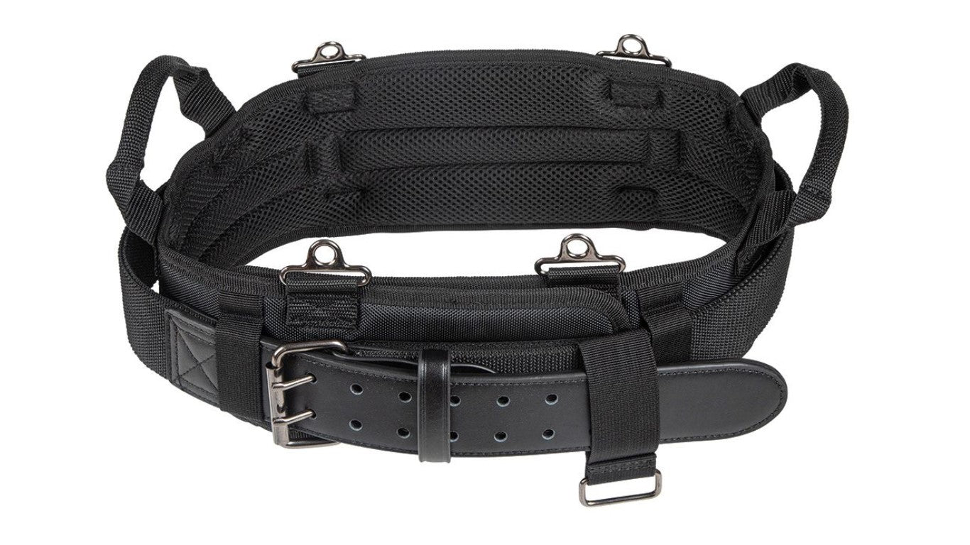 - 2-Inch wide double webbed belt features padded liner with breathable mesh interior