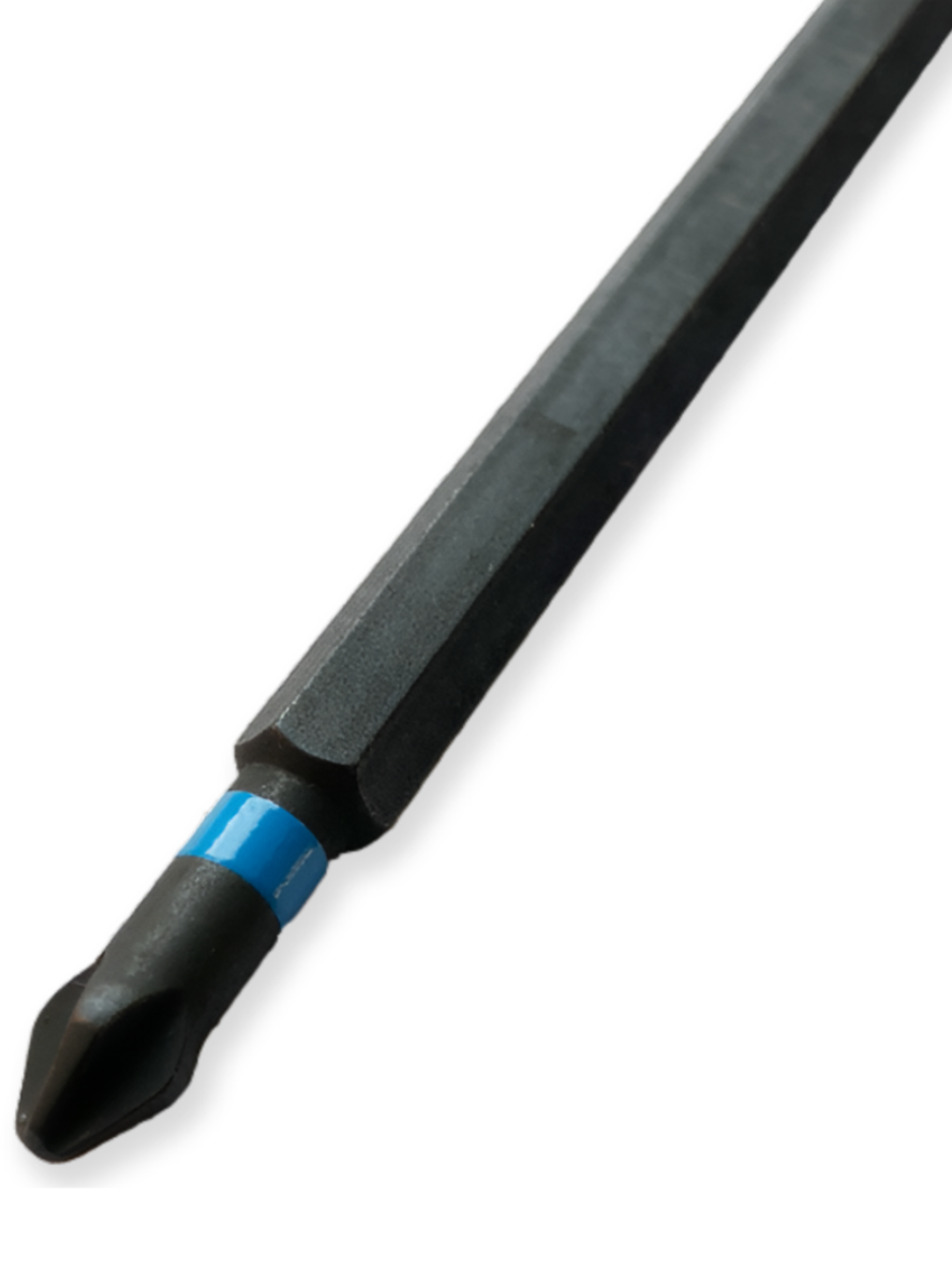 Impact rated Phillips bit available in 1, 2, 4 and 6 inch. Includes a color-coded strip for easy identification.