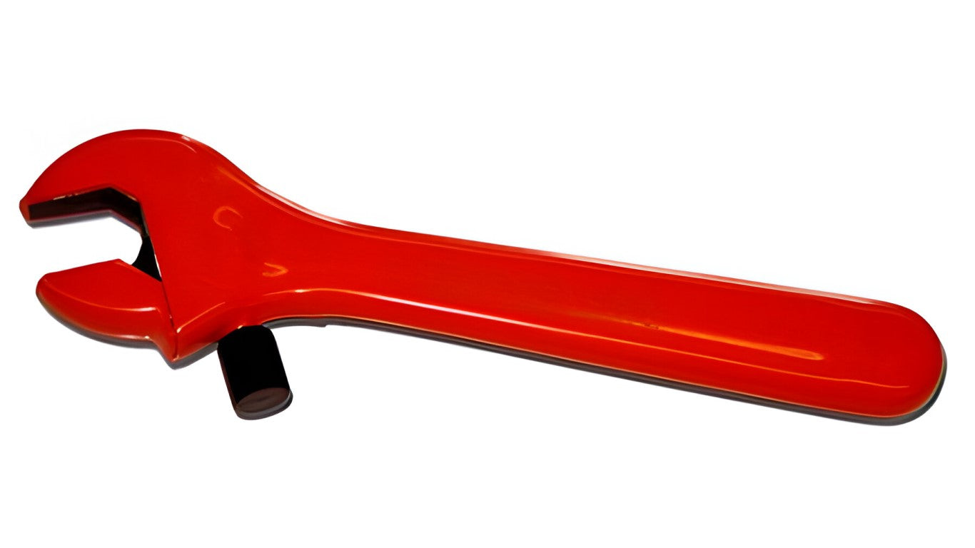 Fully insulated adjustable wrench with NO exposed metal for complete 1000V protection.