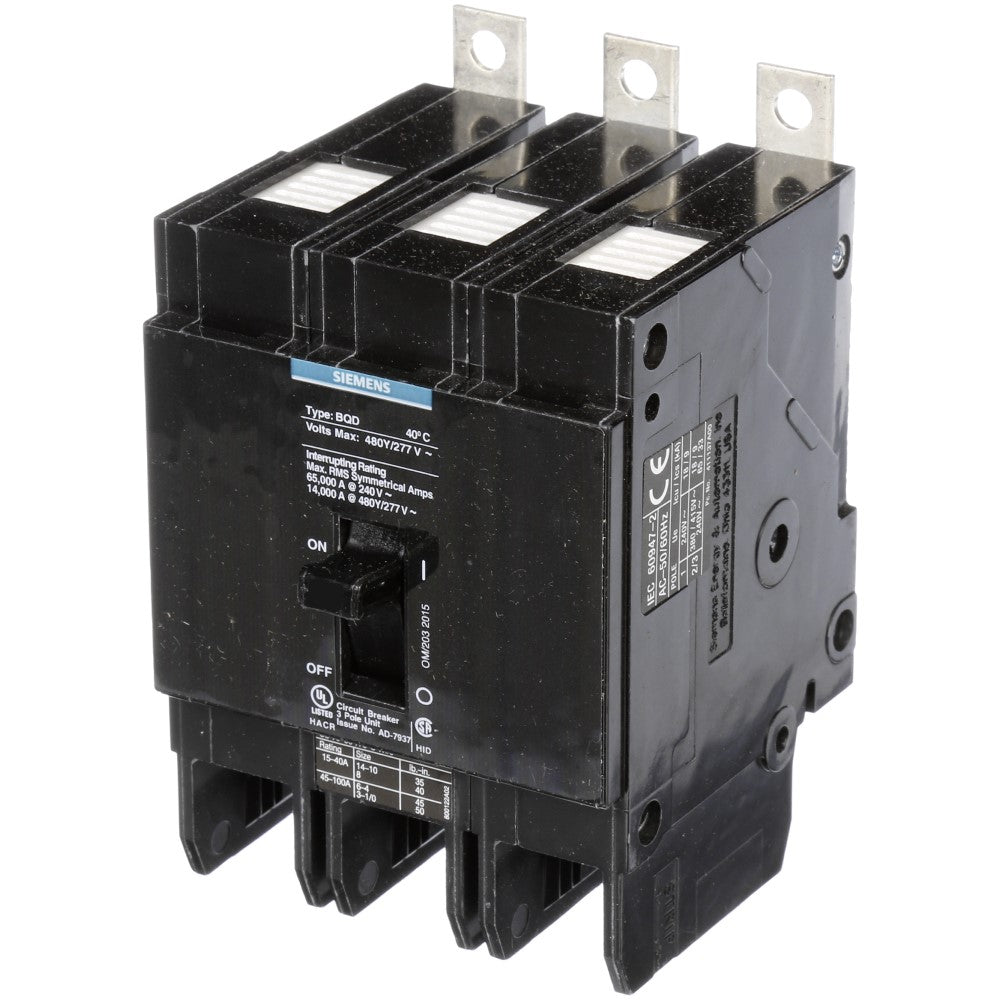 Siemens Low Voltage Molded Case Circuit Breakers Panelboard Mounting 480V Circuit Breakers - 3-pole, TM - BQD, 14KAIC, 480/277VAC are Circuit Protection Molded Case Circuit Breakers. Type: BQD Features: PANELBOARD MOUNT Application: CONSTRUCTION Std: UL 489 CSA-C22.2 V. Rating: 480/277V A. Rating: 70A (70 Amp) F. Rating: 50/60HZ Frame: 100A Trip Type: THERMAL MAGNETIC TRIP UNIT Interrupt Rating: 14KA No. Of Poles: 3P Connection: LOW TAB Material: MOLDED CASE CIRCUIT BREAKER L: 5 W: 3