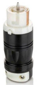 Leviton's Black & White 50 Amp, Non-NEMA line of industrial grade locking blade devices feature rugged construction that resists impact, sunlight, chemicals and rough use. All contacts and blades are solid one-piece construction for superior conductivity. Corrosion resistant versions feature nickel plated contacts and blades, plus stainless steel shrouds and screws. The ergonomic, fluted-body design with radial gripping edge is ideal for gripping and pulling. The unique cord clamp accepts a wide range of cord sizes, providing a secure grip without damaging the cord. And, they are backed by a limited lifetime warranty.