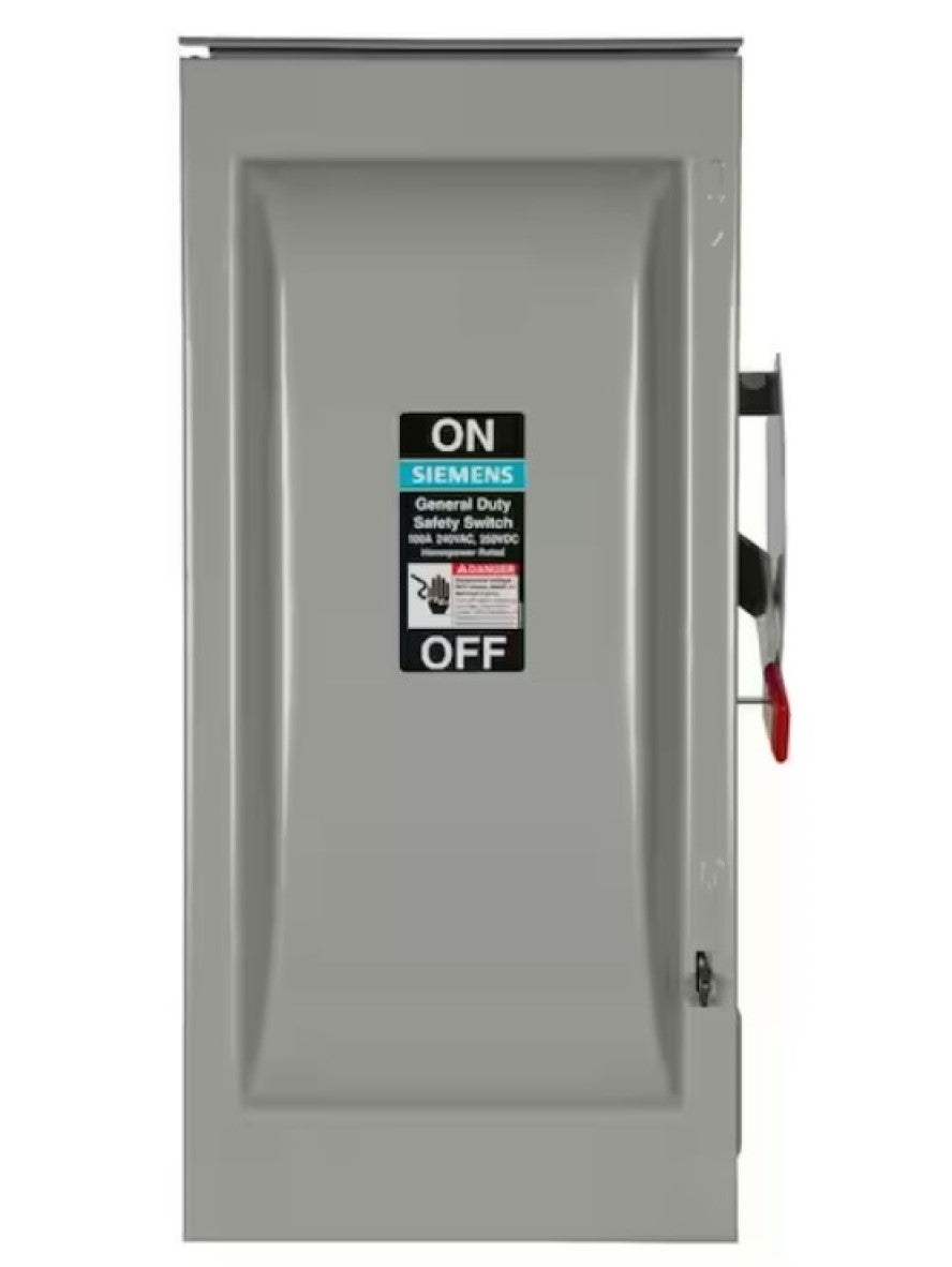 Siemens Low Voltage Circuit Protection General Duty Safety Switch. 3-Pole 3-Fuse and solid neutral Fused in a type 3R enclosure (outdoor). Rated 240VAC (200A) (200 Amp). Horse power (Std, Time delay) fused: 1-PH 2-W (15, - ), 3-PH 3-W (25, 60), 250VDC (40). Special features: service entrance labeled .