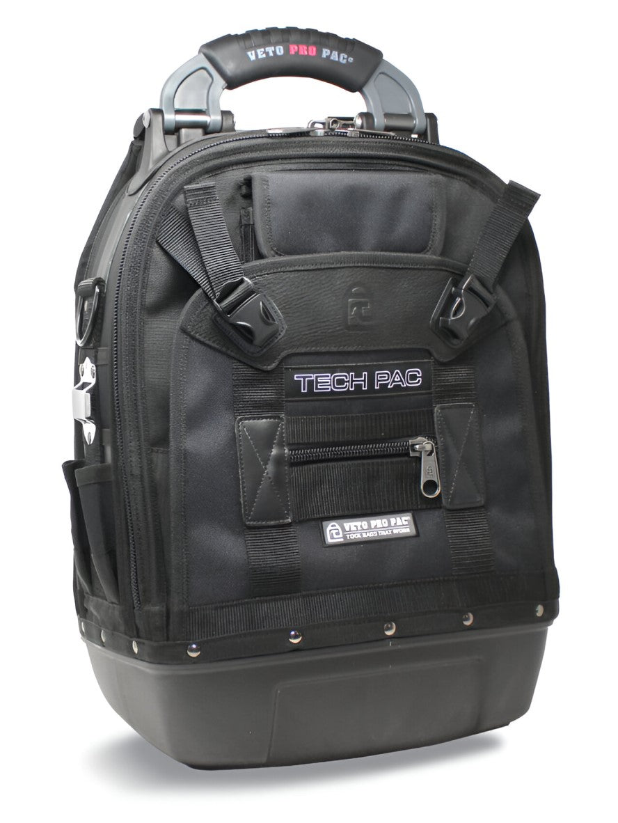 The Tech Pac Blackout is a blacked-out tool backpack for tool storage based on our Tech Pac but with Veto Pro Pac’s V-Swap™ system that COMES WITH FRONT AND BACK removable TOOL and METER pocket panels which are also exchangeable. You can also purchase a Laptop Panel that can turn the bag into a tool bag/laptop bag, and the Laptop Panel can go in the front or the back, and a flat rubber panel for Bulk Storage. Includes V-Swap™ Front Tool Panel and Back Tool & Meter Panels, V-Swap™ Laptop and Bulk Storage Panels Sold Separately.