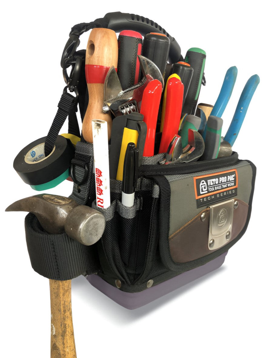 The TP5B is a clip on service tool pouch designed to hold smaller meters and hand tools. With more capacity than the TP4B, it features a plastic hard bottom offering moisture protection and stability, along with a variety of vertical tool storage options.