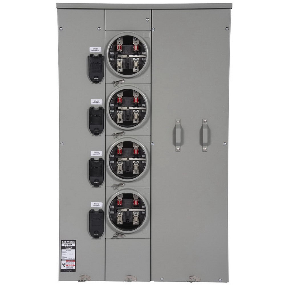 | Siemens Low Voltage's Multi-Family Metering Line of PAK Metering: EUSERC as part of the PAK Metering: EUSERC Group. Type: UNI-PAK Features: NO BYPASS EUSERC CERTIFIED Appn: GARDEN - STYLE Std: UL-50,67,414 V. Rating: 120/240V A. Rating: 600A Phase: 1PH Size: 9.00 x 34.66 x 48.630 No. Of Cutouts: 11 Cutout Size: 1 x (1/2,3/4,1,1-1/4"), 6 x (2-1/2,2,1-1/2,1-1/4,1"), 2 x (4,3-1/2,3,2-1/2,2"), 2X4" Cable Entry: TOP OR BOTTOM FEED Terminal: 3X2 STUDS. Insulated.Appn:. Wall Mounted. Enclosure: RING |